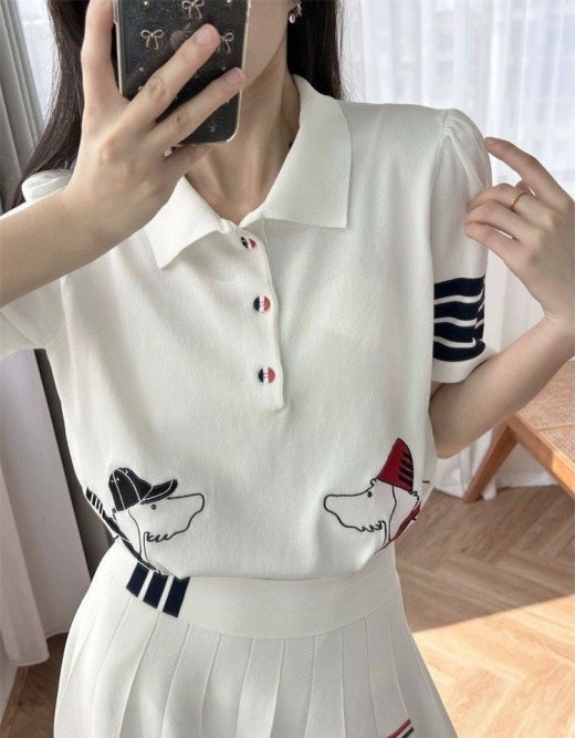 톰브라운 캡헥터 카라 반팔 니트 여성용(3컬러)