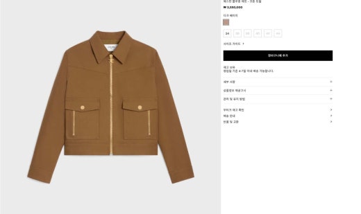 셀린느 웨스턴 블루종 재킷 코튼 트윌 베이지 여성용(1컬러)