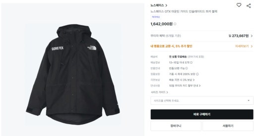 노스페이스 고어텍스 마운틴 인슐레이티드 자켓 블랙 남여공용(1컬러)