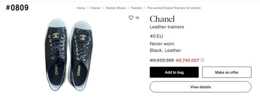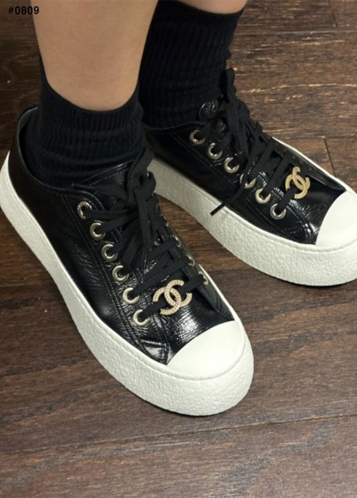 샤넬 24p 카프레더 스니커즈 블랙 여성용(1컬러)