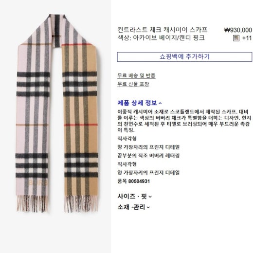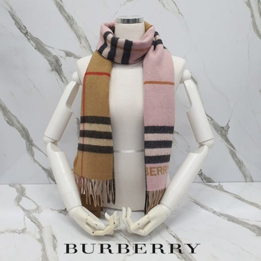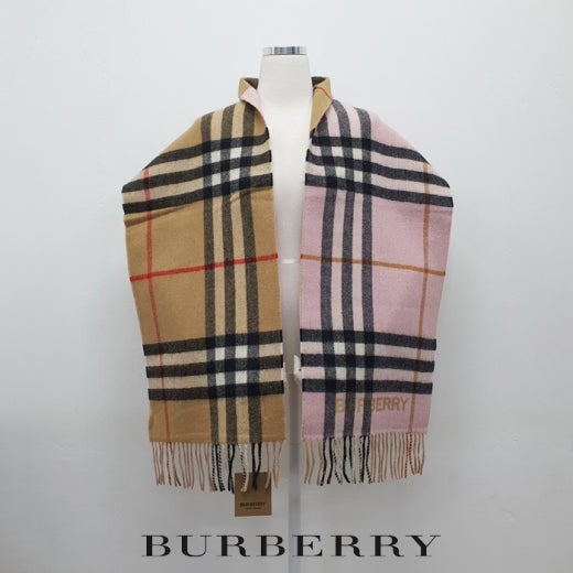 버버리 컨트라스트 체크 캐시미어 투톤 머플러 핑크&베이지 남여공용(1컬러)