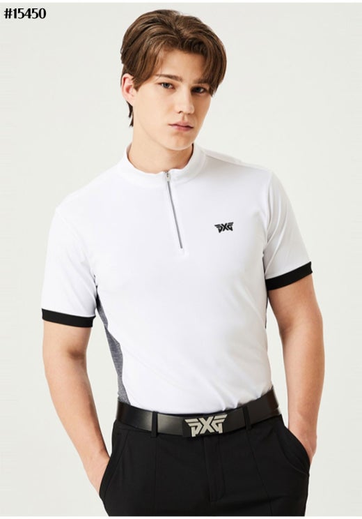 PXG 카라 블록 하프 집업 티셔츠 남성용(2컬러)