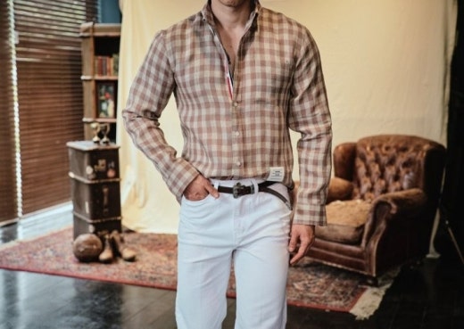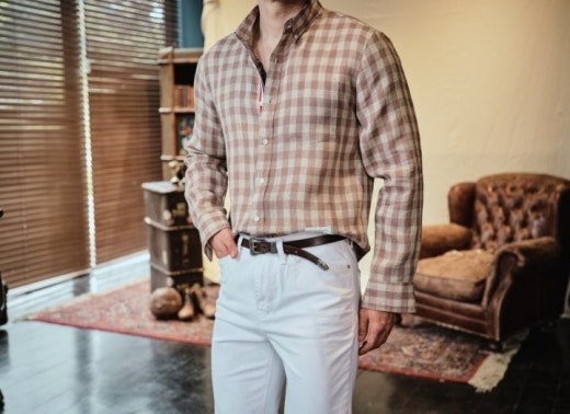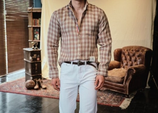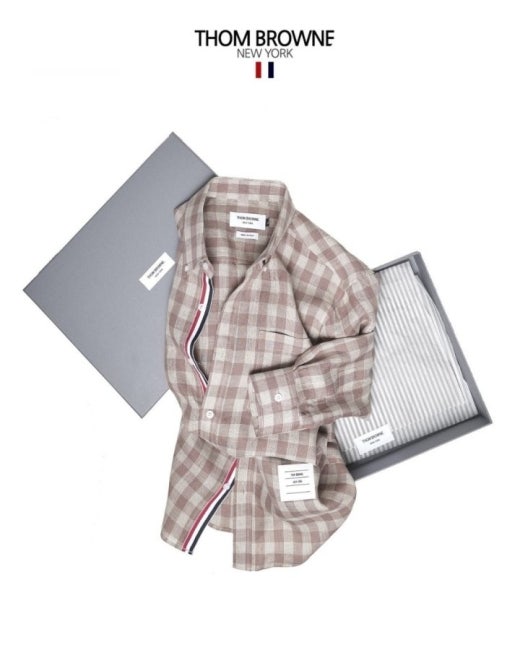 톰브라운 체크 린넨셔츠 베이지 남성용(1컬러)