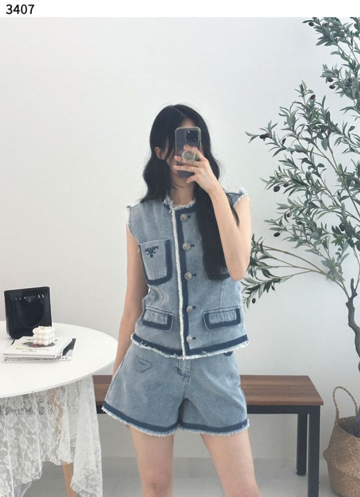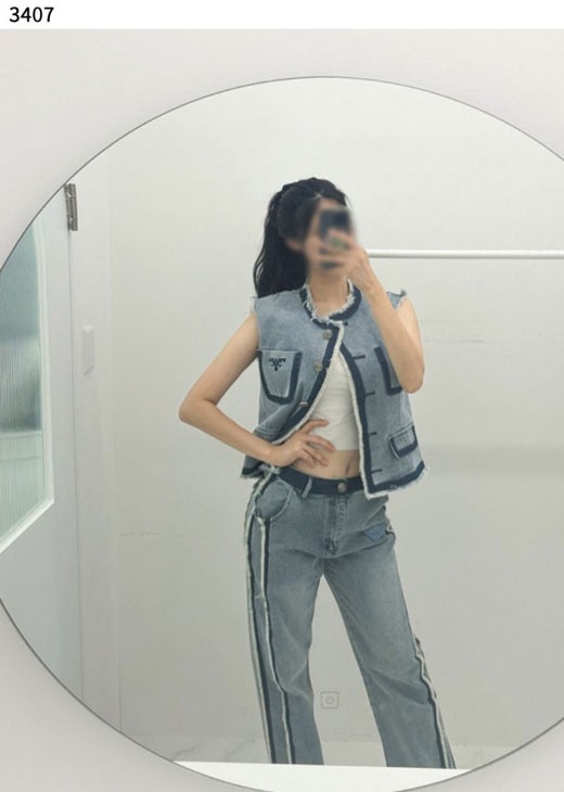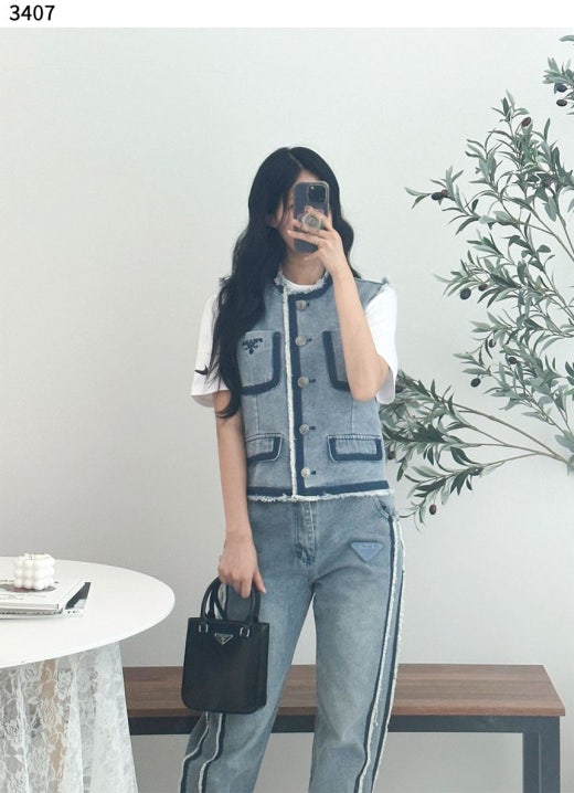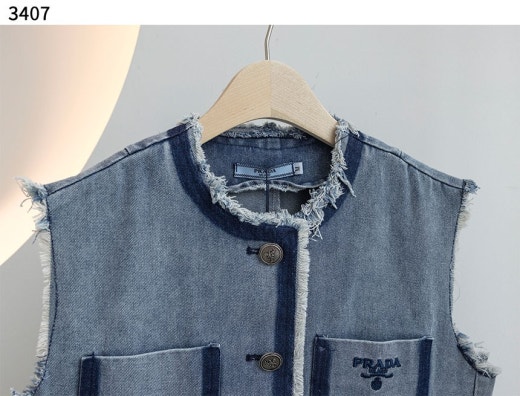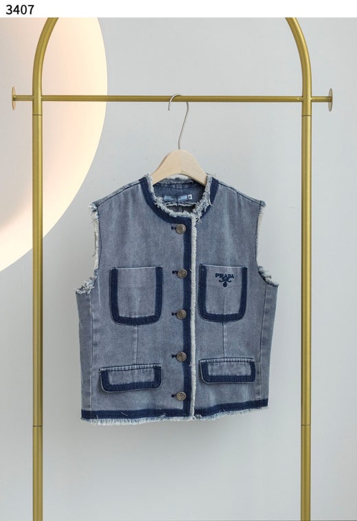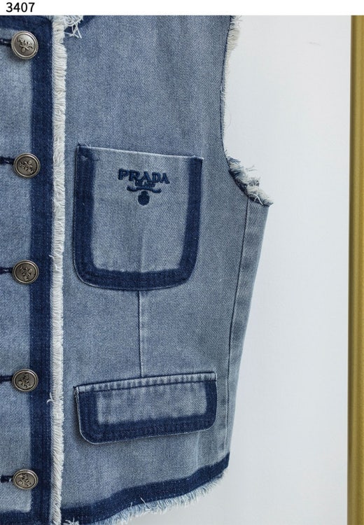 프라다 모먼 스티치 데님 포켓 베스트 연청 여성용(1컬러)