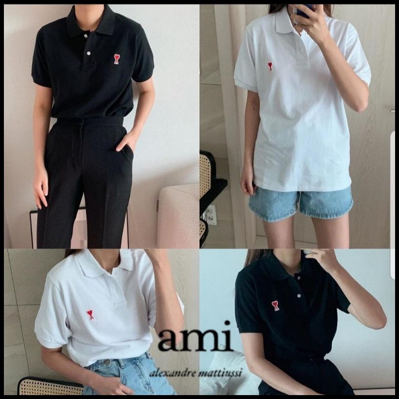 아미 스몰하트 카라 반팔티셔츠 남여공용(2컬러)