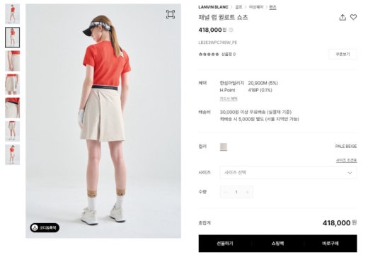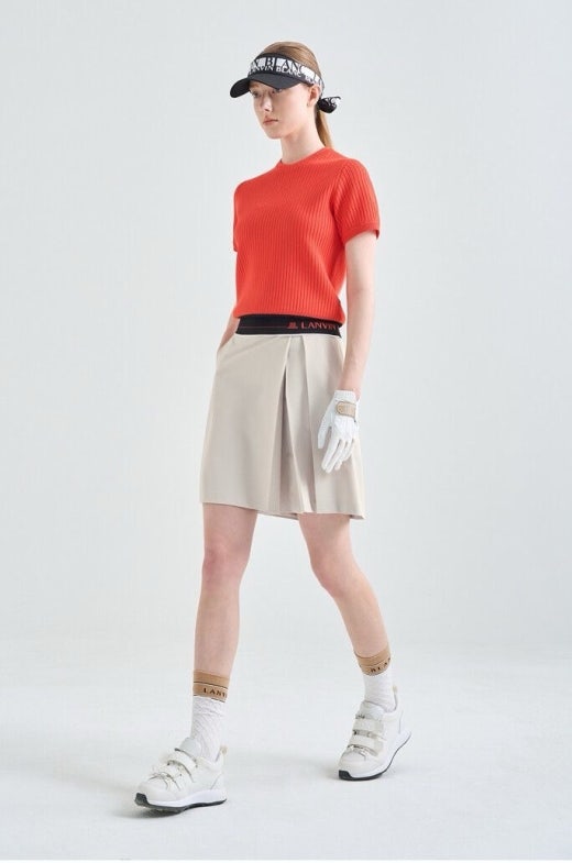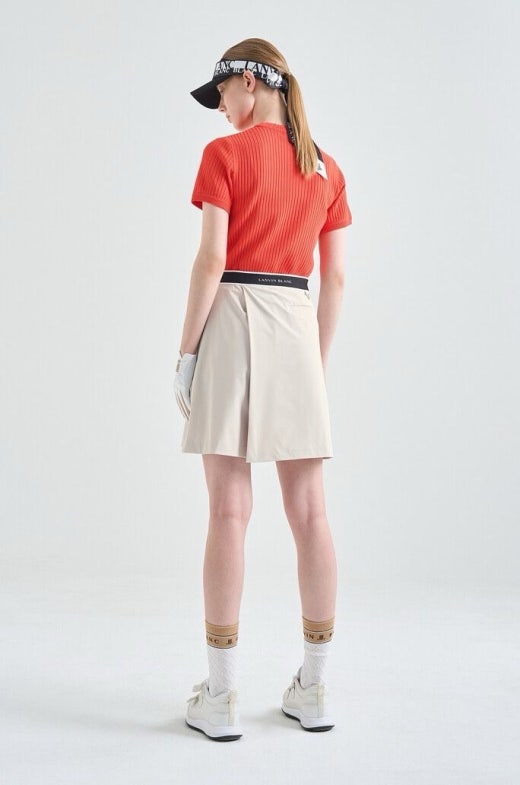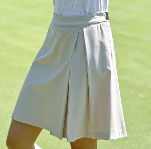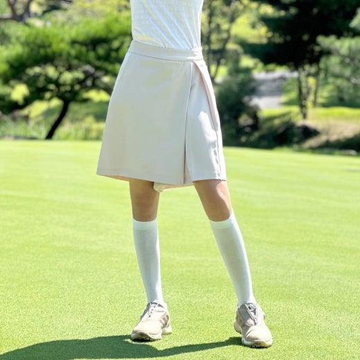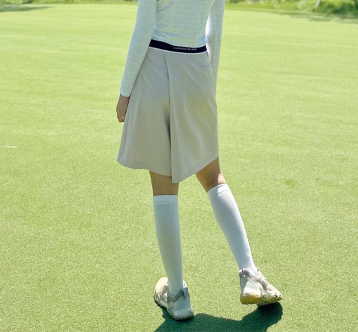 👉 전면에 패널을 덧대어 언뜻 보기에 랩 스커트의 외관을 연출하는 하프기장의 와이드한 쇼츠