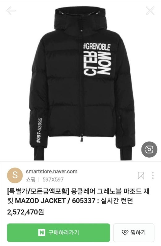 몽클레어 그레노블 MAZOD 해시테그 다운구스 남여공용(1컬러)