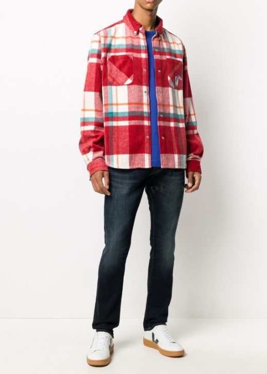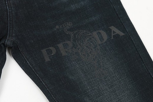 프라다 화이트 트라이앵글 융기모 진청 슬림진 남성용(1컬러)