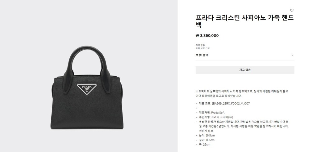 프라다 크리스틴 사피아노 가죽핸드백 여성용(1컬러)