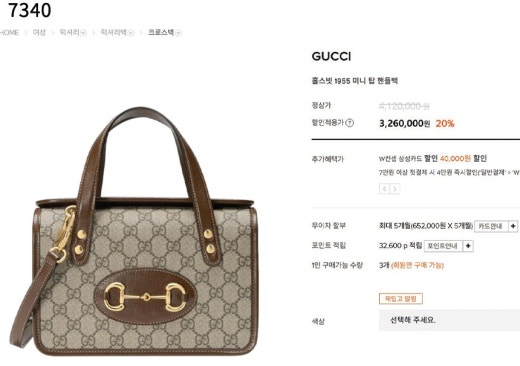 구찌 홀스빗 1955 미니 탑 핸들백 브라운 여성용(1컬러)
