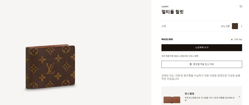 루이비통 모노그램 LV 멀티플월릿 반지갑 브라운 남성용(1컬러)