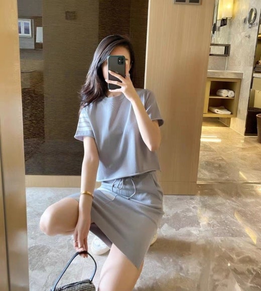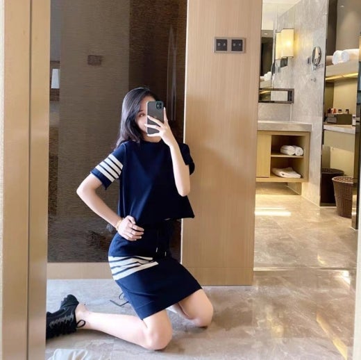 톰브라운 4바 스커트&티셔츠 세트 여성용(2컬러)