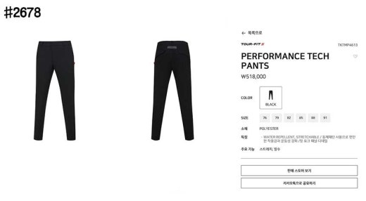 타이틀리스트 투어핏 에스 퍼펙트 핏 팬츠 블랙 남성용(1컬러)