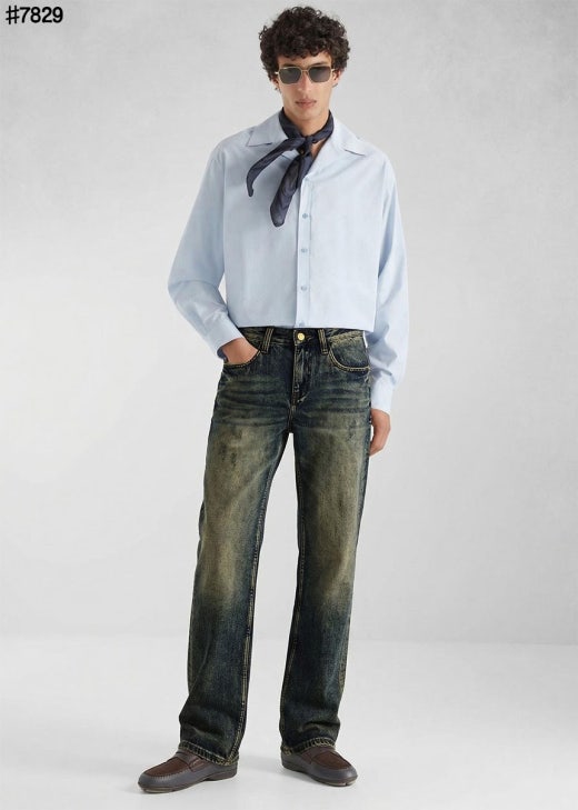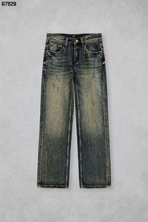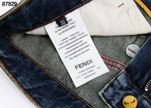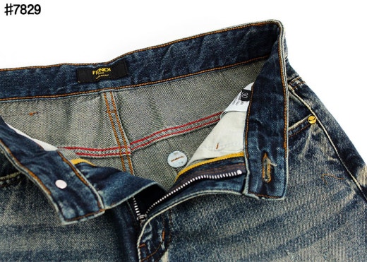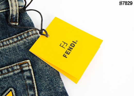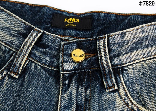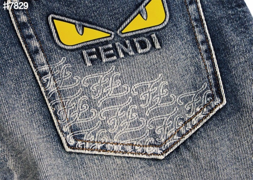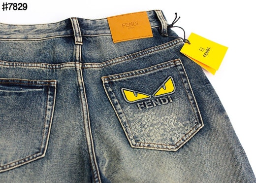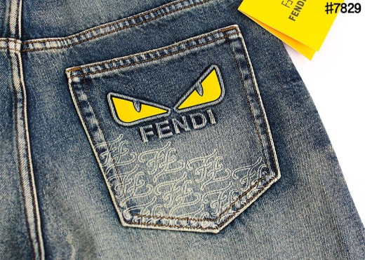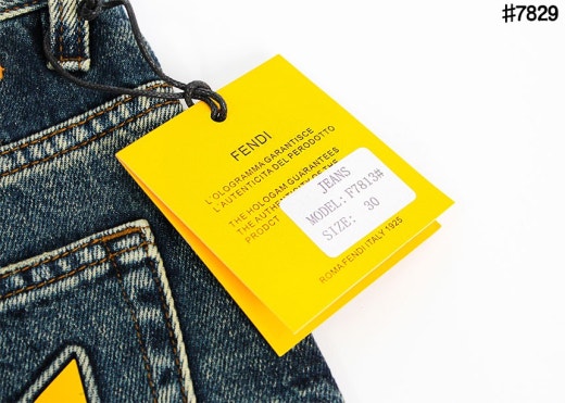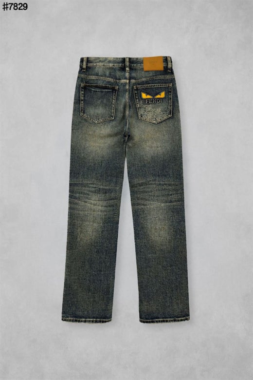 펜디 레더 패치 스터드 아이 스트레이트핏 워싱 데님 팬츠 중청 남성용(1컬러)