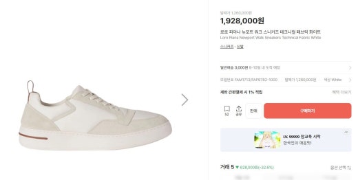 로로피아나 뉴포트 워크 스니커즈 화이트 남성용(1컬러)