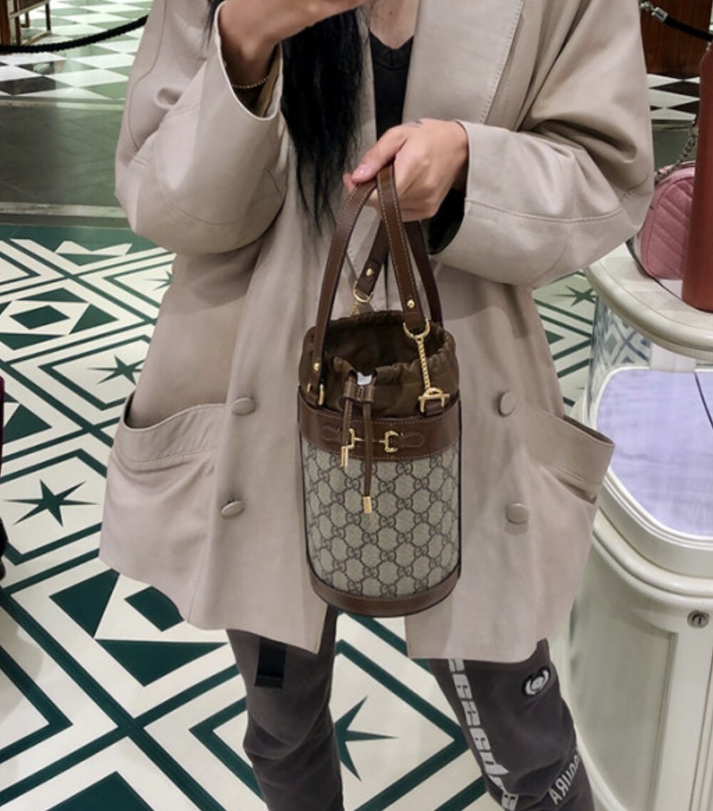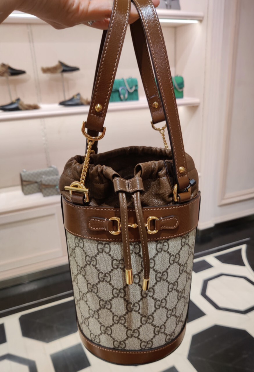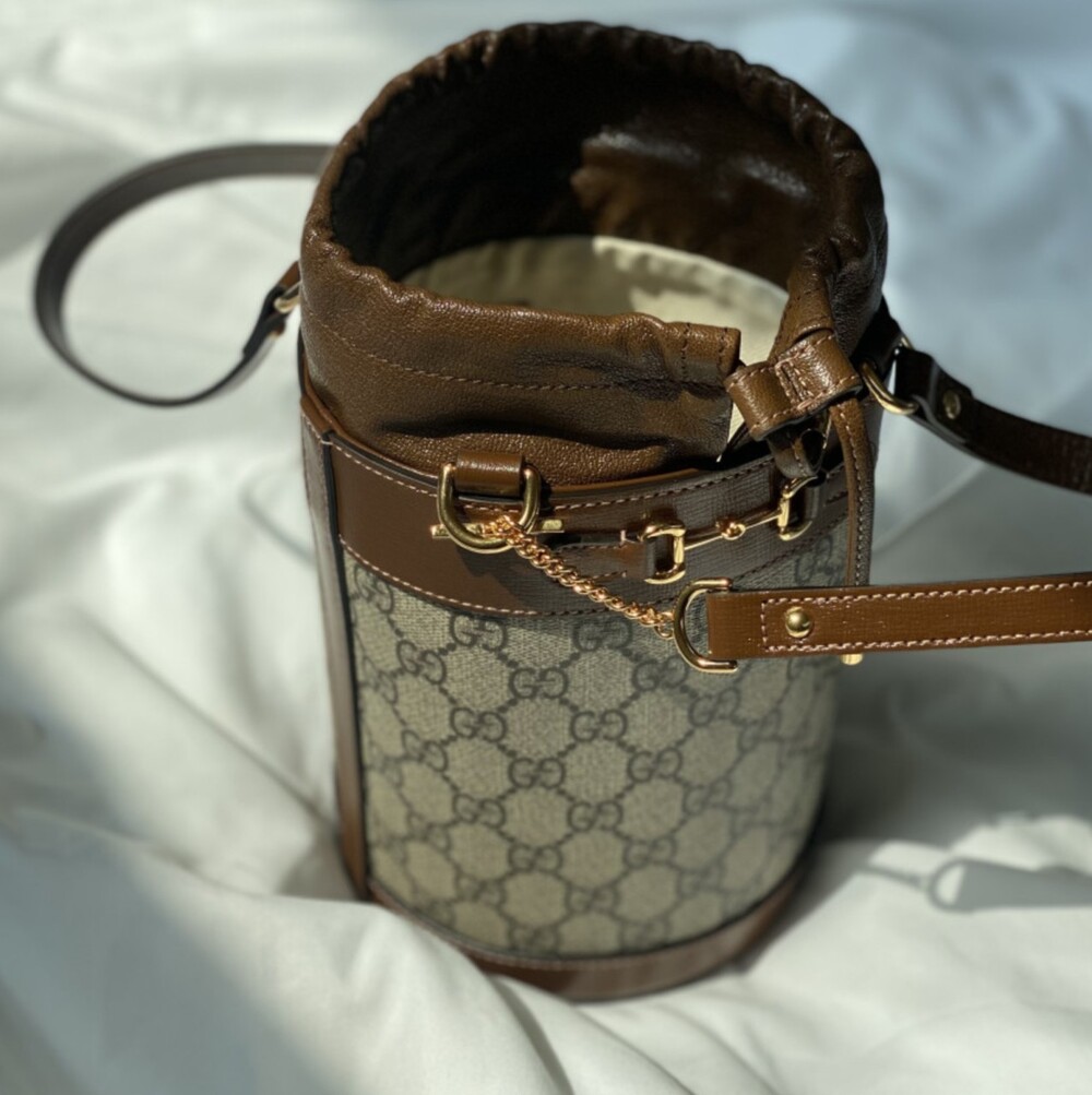 구찌 GG수프림 1955 홀스빗 스몰 버킷백 브라운 여성용(1컬러)
