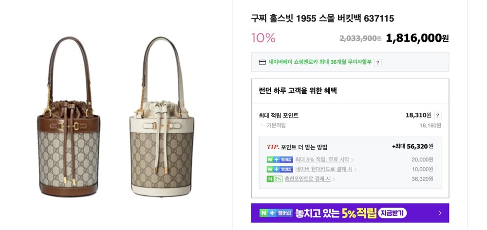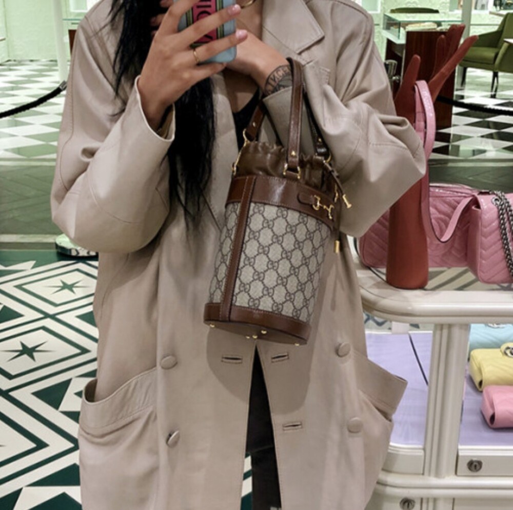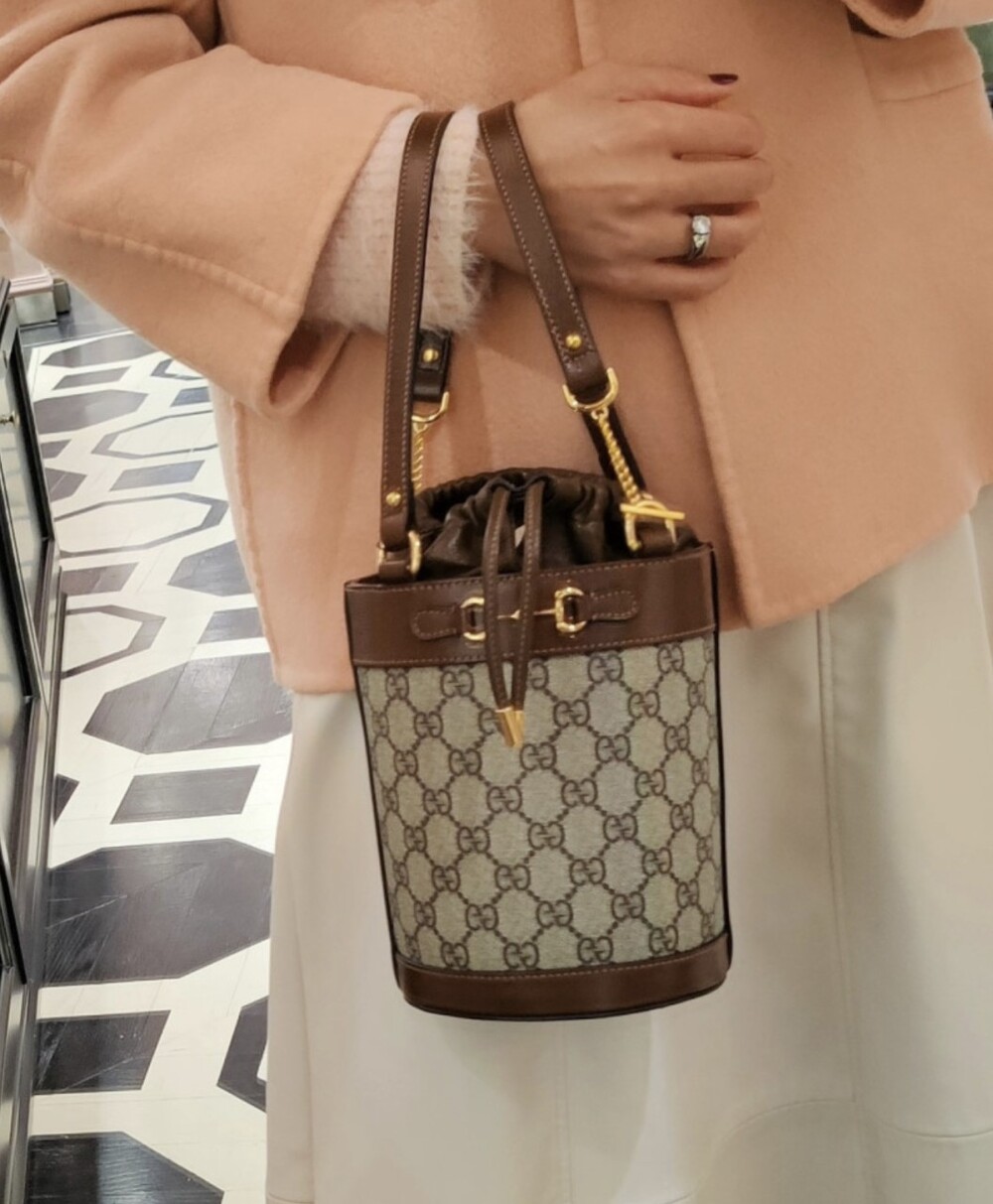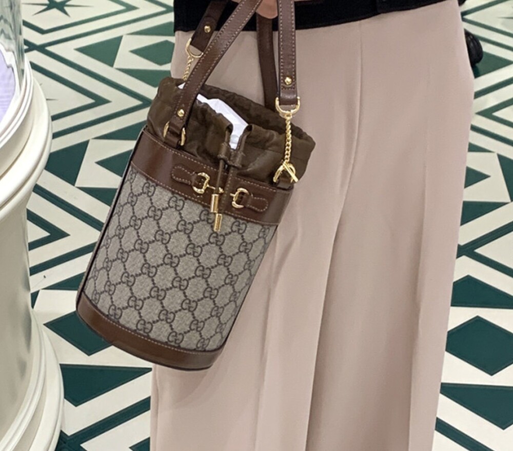 구찌 GG수프림 1955 홀스빗 스몰 버킷백 브라운 여성용(1컬러)