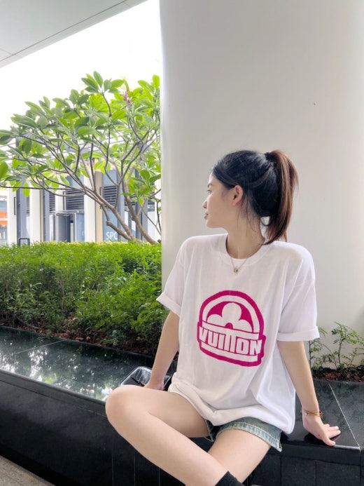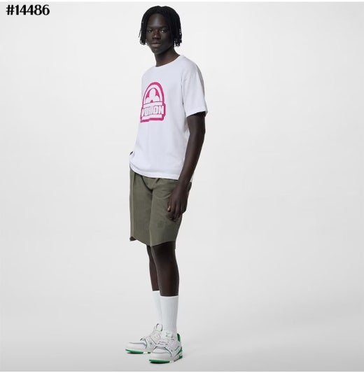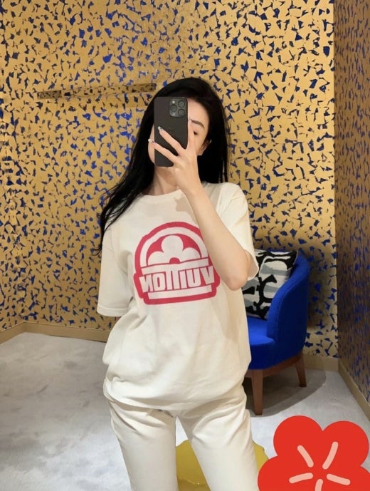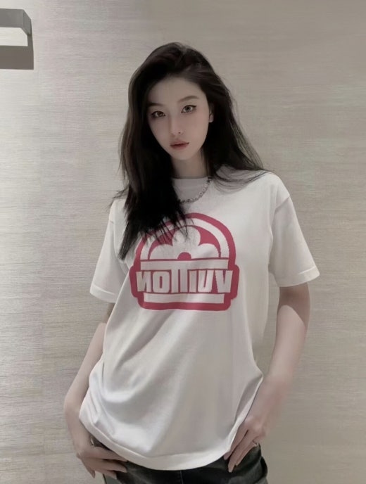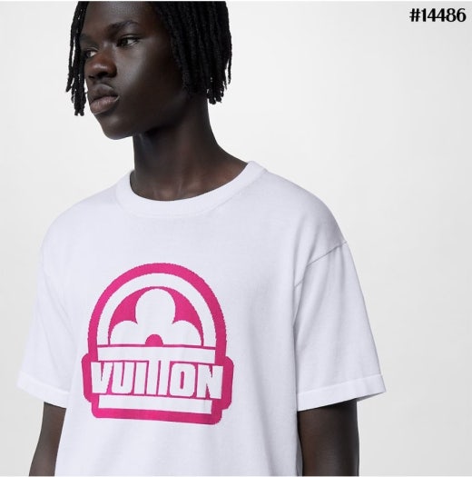 루이비통 핑크 그래픽 로고 크루넥 쇼트 슬리브드 반팔티셔츠 남여공용(2컬러)