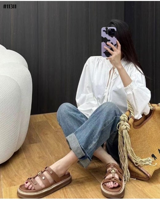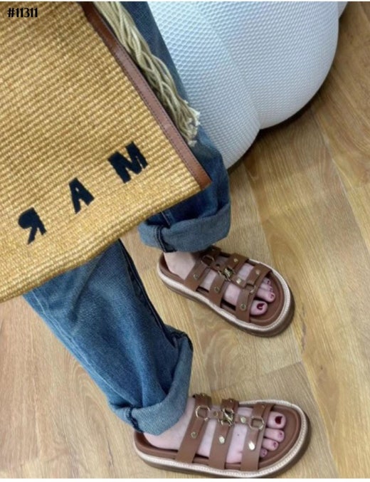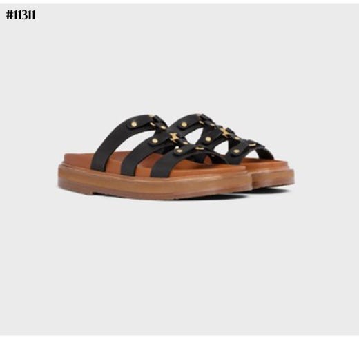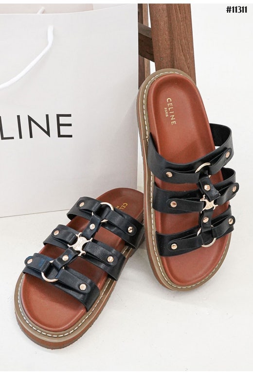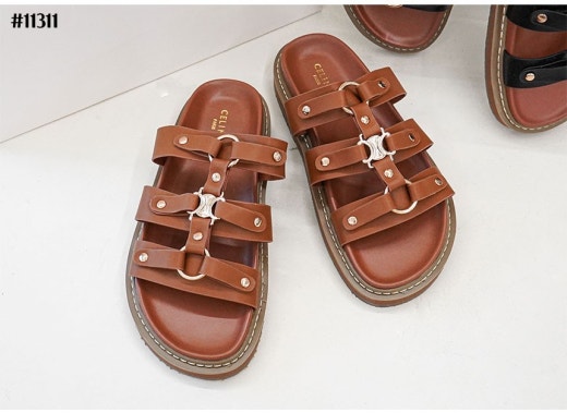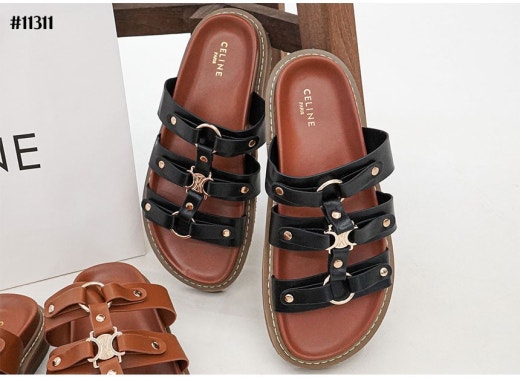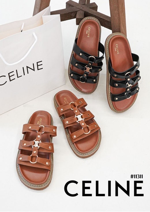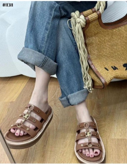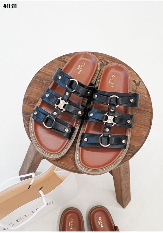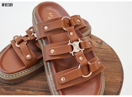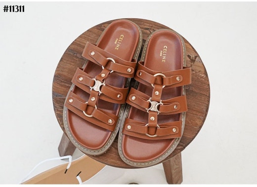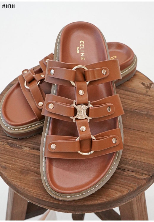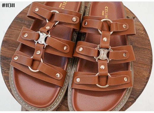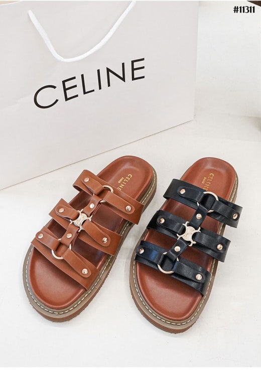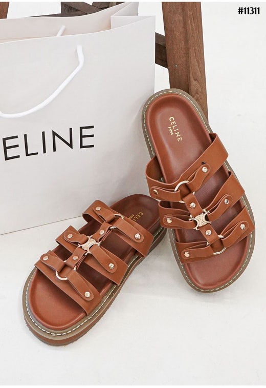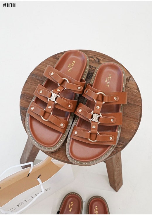 셀린느 티피 슬라이드 - 베제탈 태닝 카프스킨탠 슬리퍼 샌들 여성용(2컬러)