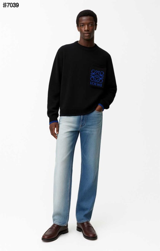 로에베 블루 아나그램 포켓 울 자카드 니트 풀오버 블랙 남성용(1컬러)