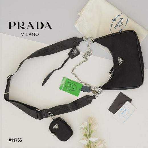 프라다 리에디션 테수토 사피아노 가죽 트리밍 리나일론 숄더백 블랙 여성용(1컬러)