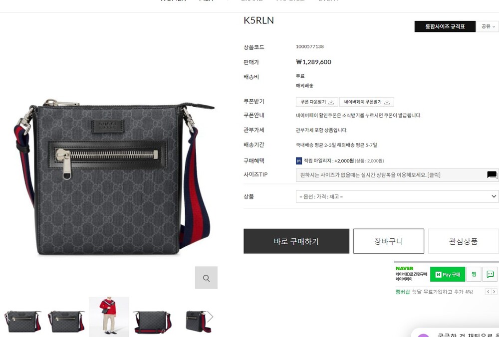 구찌 GG수프림 스몰 메신저백 블랙 남여공용(1컬러)