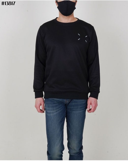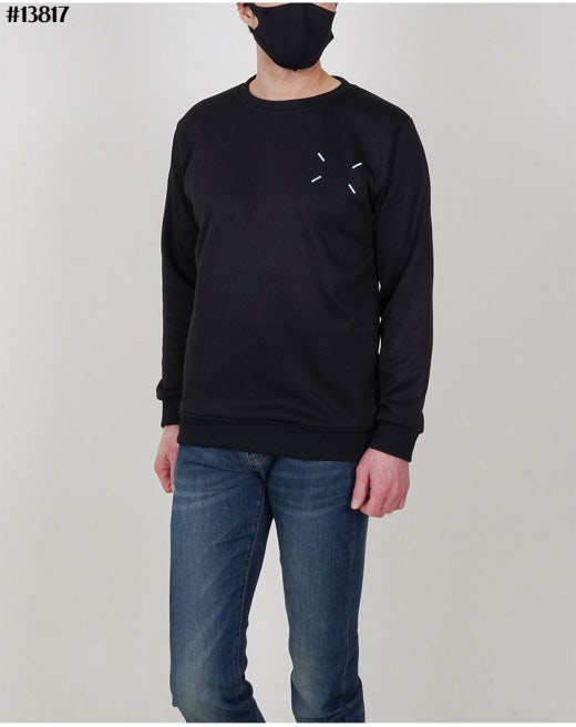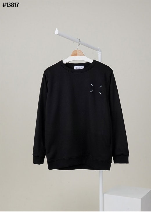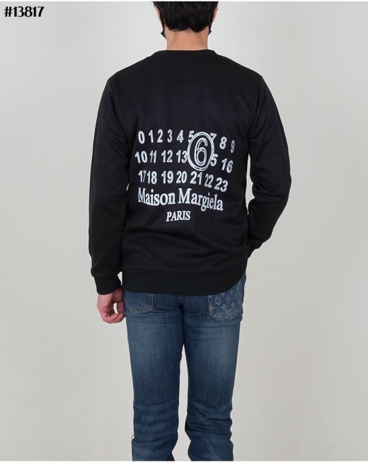 메종마르지엘라 스티치 넘버링 루즈핏 라운드 맨투맨 티셔츠 블랙 남성용(1컬러)