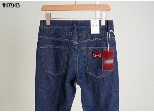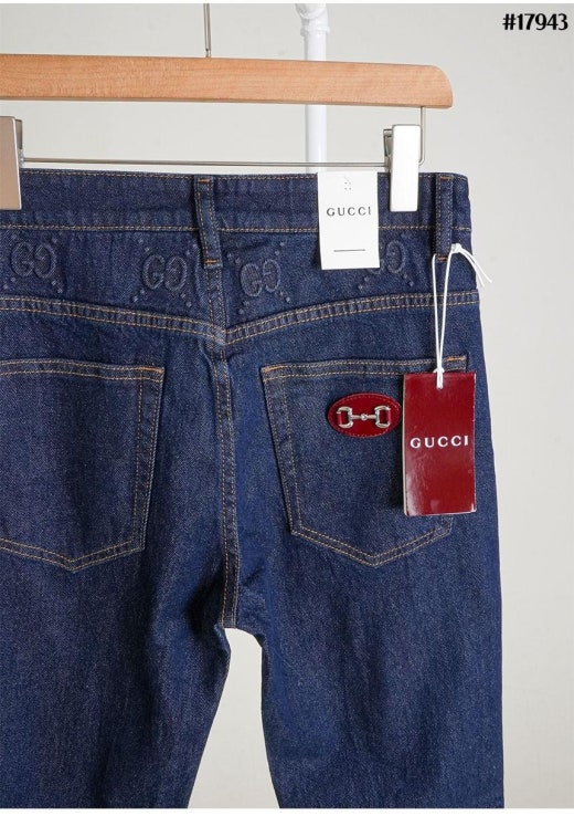 구찌 에나멜 홀스빗 포켓 패치 GG 엠보 슬림핏 데님 팬츠 진청 남성용(1컬러) 🍀세일