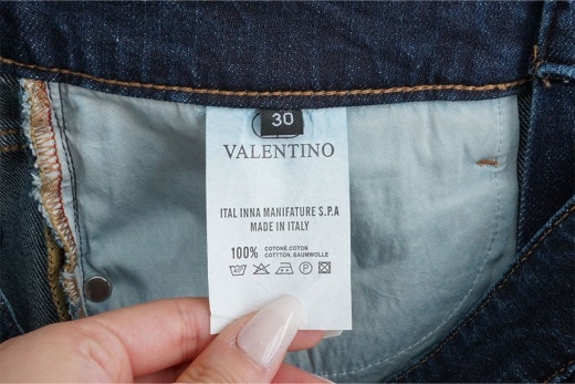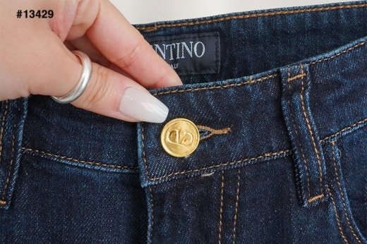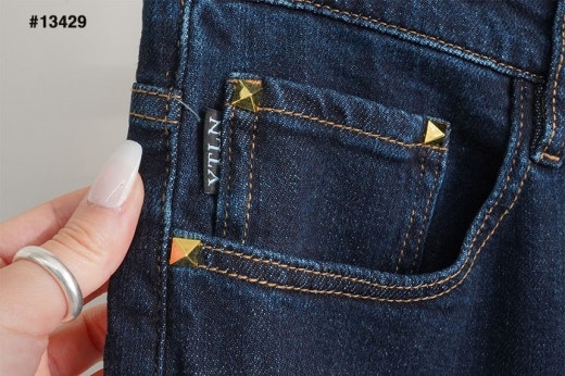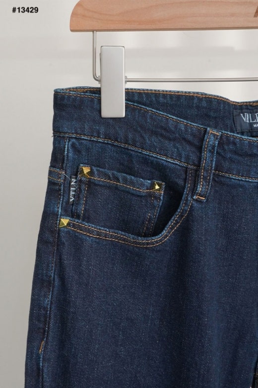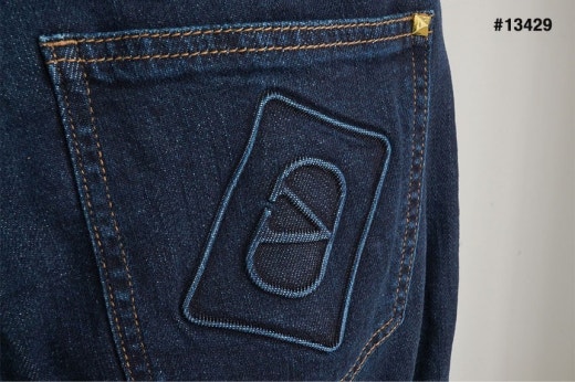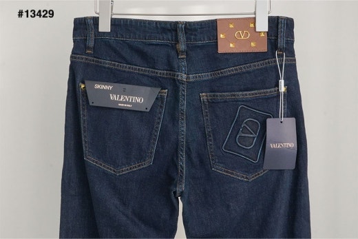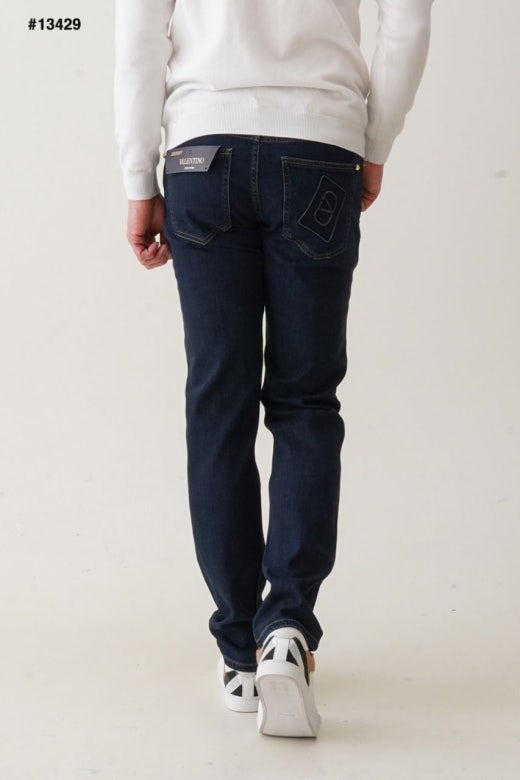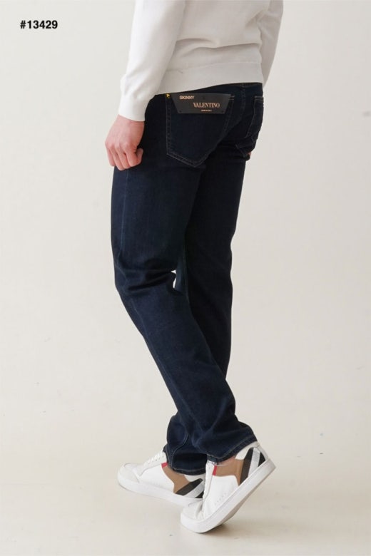 발렌티노 레더 스터드패치 진청 슬림핏 데님진 남성용(1컬러)