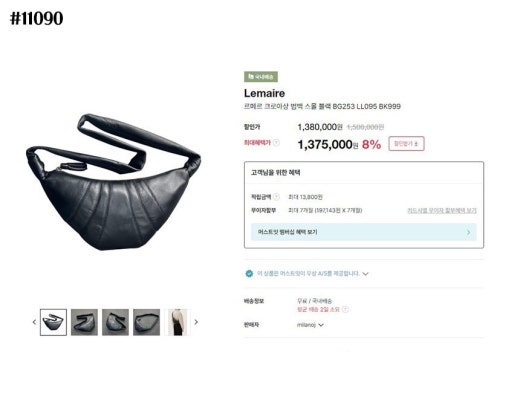 르메르 크로아상 범백 스몰 블랙 여성용(1컬러)