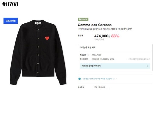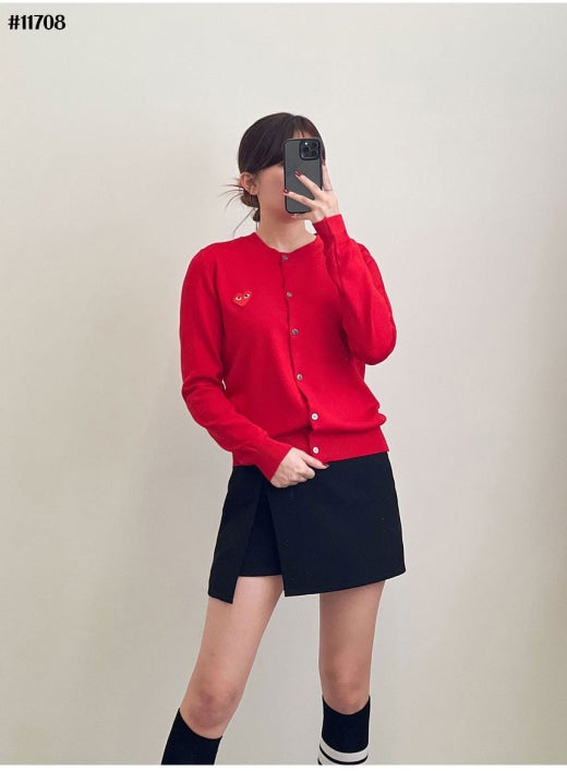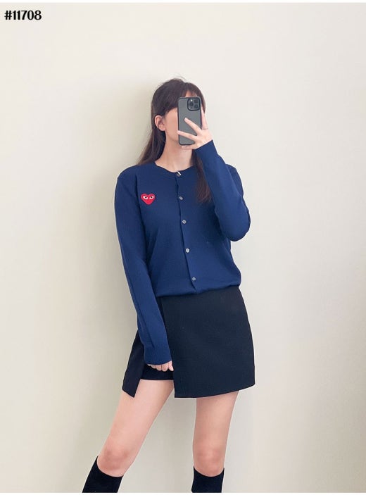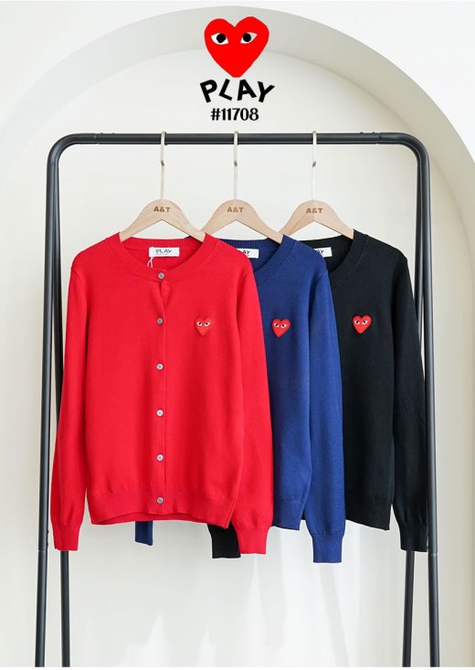 꼼데가르송 빅레드하트 로고 라운드 니트 가디건 여성용(3컬러)