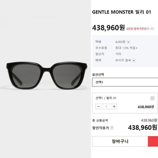 젠틀몬스터 빌리 01 선글라스 남여공용(1컬러)
