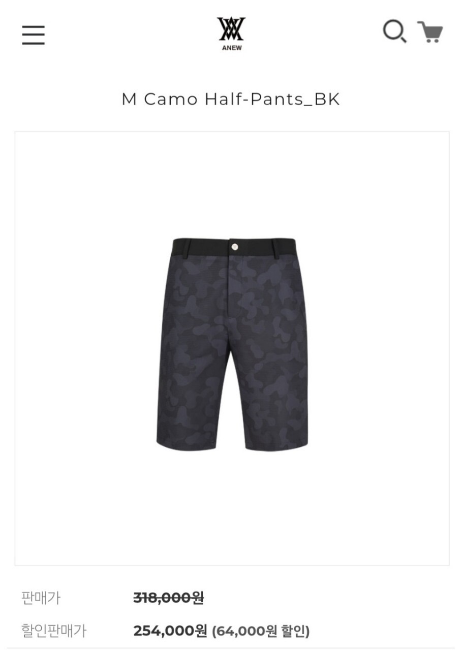 어뉴 카모 하프 5부팬츠 남성용(2컬러)