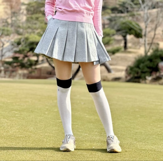 ➡️ 톤온톤 배색이 돋보이는 기능성 울 플리츠 스커트.