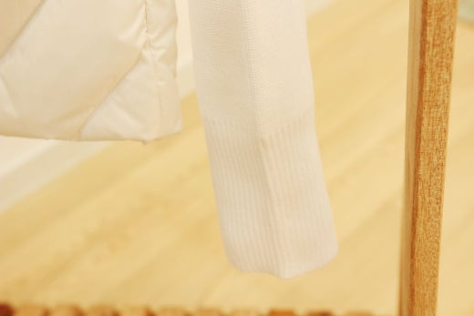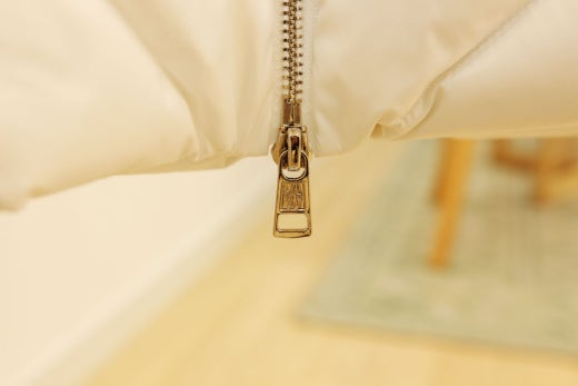 몸통 전체와 스탠딩 넥크라인까지 모두 다운패딩으로 되어 있어