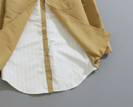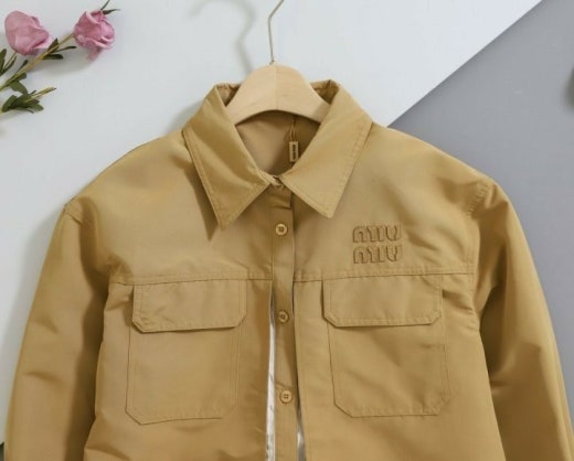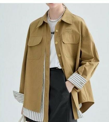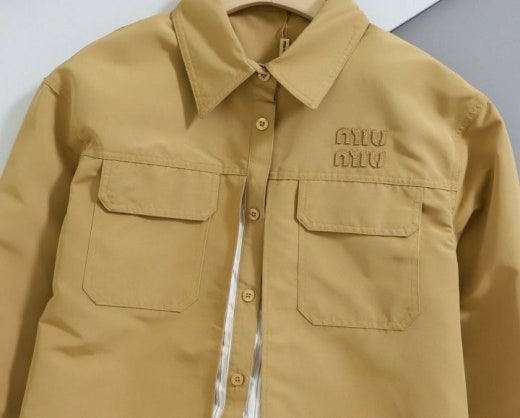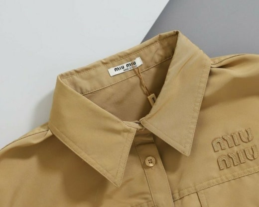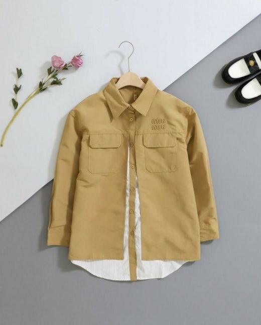 미우미우 레이어드 카라넥 스트라이프 셔츠&자켓 베이지 여성용(1컬러)