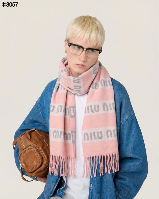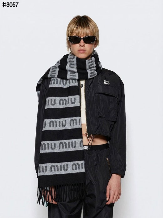 미우미우 스트라이프 울 자카드 태슬 숄 머플러 남여공용(2컬러)