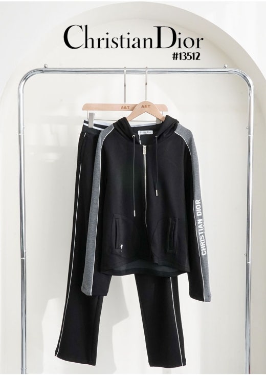 디올 사이드 자수 레터링 로고 후드 집업 & 자수 조거 팬츠 셋 여성용(2컬러)