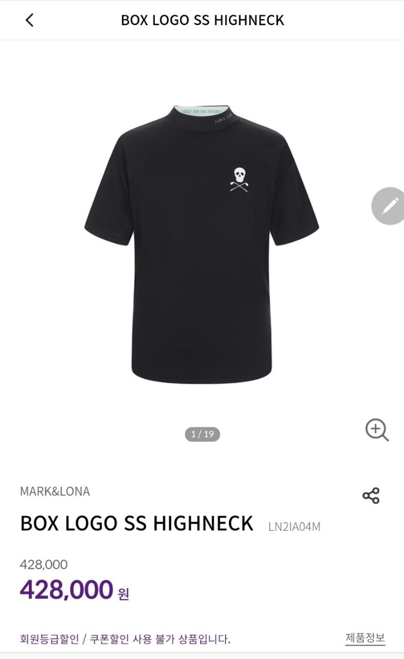 마크앤로나 박스로고 하이넥티셔츠 남성용(2컬러)