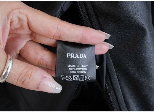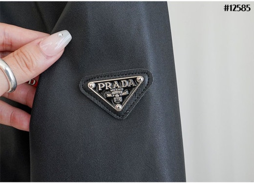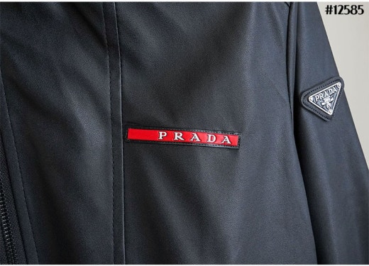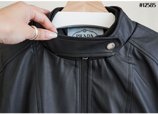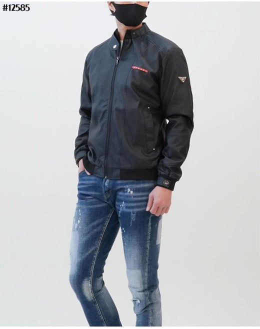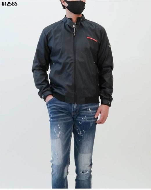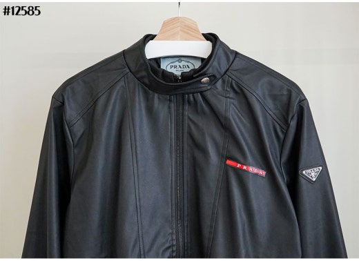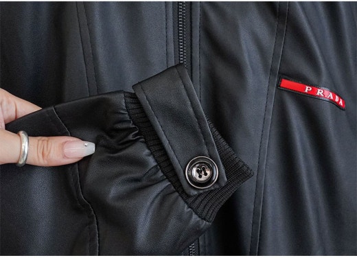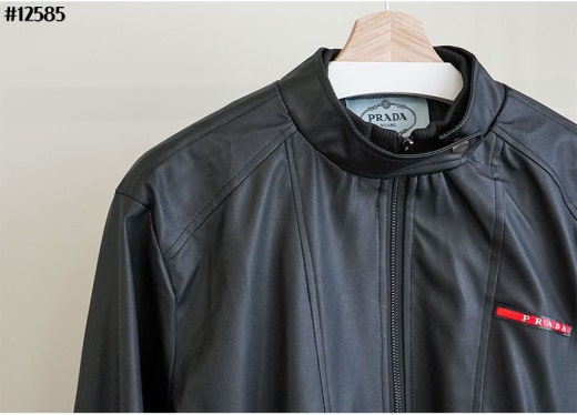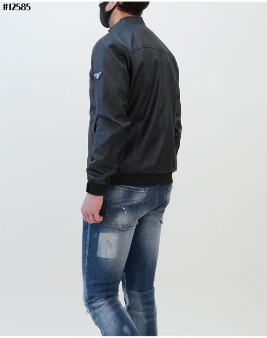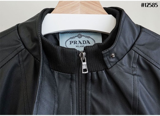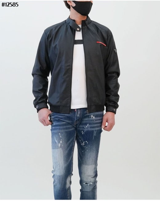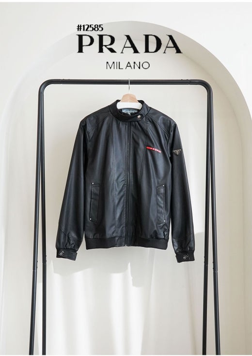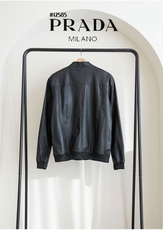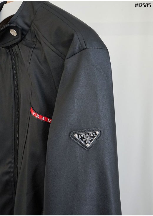 프라다 레드 로고 패치 헨리넥 레더 자켓 블랙 남성용(1컬러)