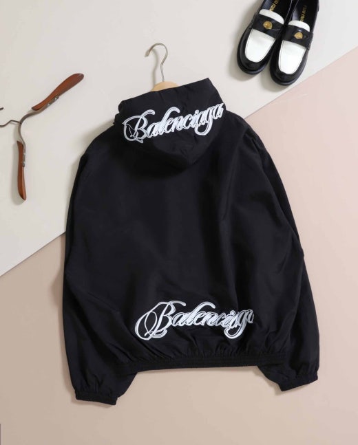 발렌시아가 필기체 후드 집업 블랙 여성용(1컬러)