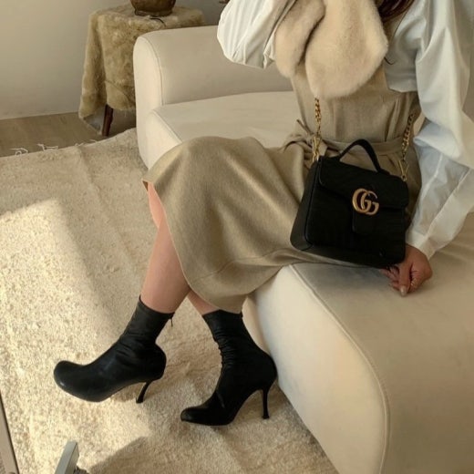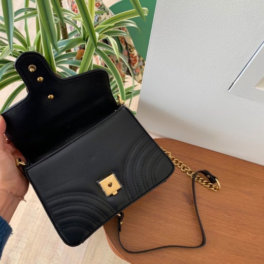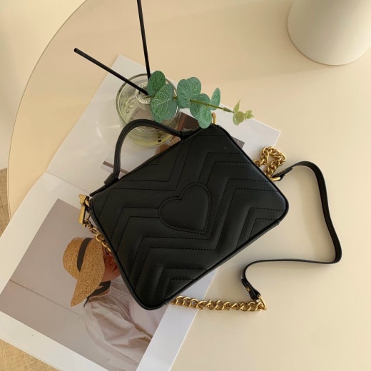 고급스러운 쉐브론 패턴에 뒷면 하트무늬, 분위기 있는금장 로고 플레이트와 깔끔한 실루엣의 쉐브론 라인 디자인까지 소가죽 그 위로 섬세하게 표현된 퀼팅 역시 빼놓을 수 없는 포인트 :)