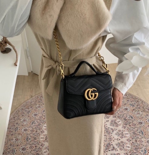 컴팩트한 크기에 탑 핸들로 손에 걸치거나 탈부착이 가능한 체인 스트랩으로 숄더백이나 크로스바디 스타일도 데일리스럽게 연출이 가능 !!!!!