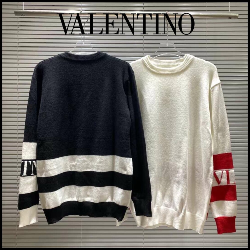 발렌티노 수입고급 소매 VLTN 로고 라운드 울 니트 남여공용(2컬러)