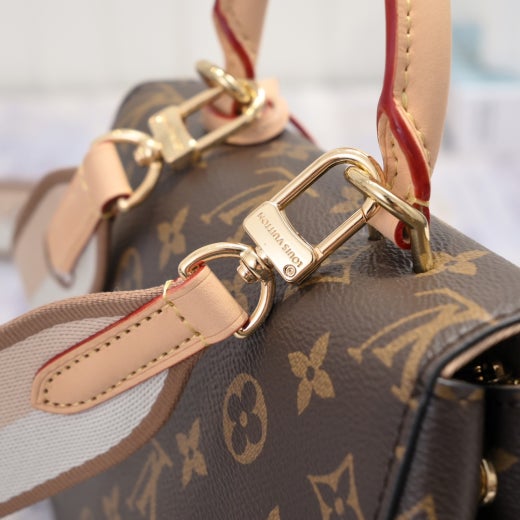 아이코닉한 모노그램 캔버스로 선보이는 사랑스러운 클루니 미니 핸드백. LV 애호가의 마음을 사로잡을 작은 크기의 데일리 아이템. 메종 특유의 클래식한 천연 가죽 소재를 활용한 토론 핸들 및 키 벨. 위빙 기법으로 구현한 루이 비통 로고가 특징인 탈착형 텍스타일 스트랩을 구성하여 다양하게 스타일링할 수 있는 아이템.