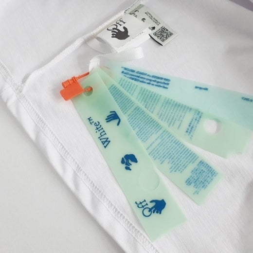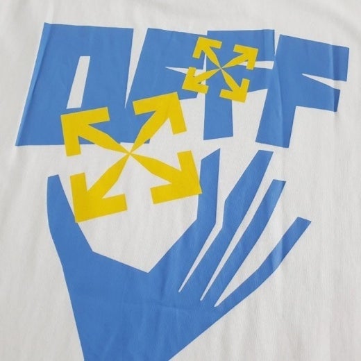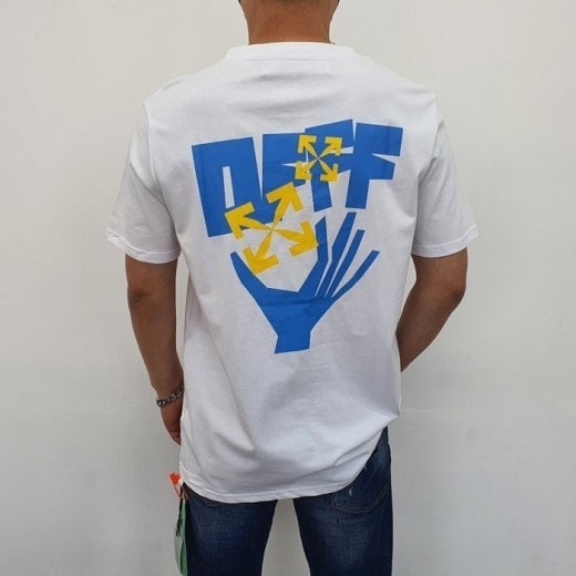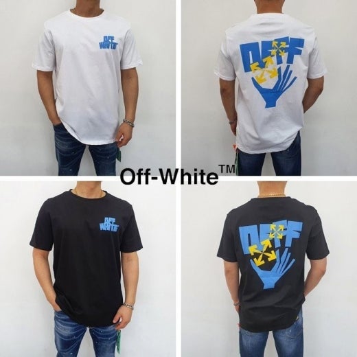 오프화이트 핸드 애로우 프린팅 라운드 반팔 티셔츠 남여공용(2컬러)