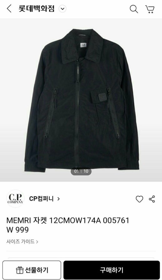 CP컴퍼니 MEMRI 자켓 블랙 남성용(1컬러)