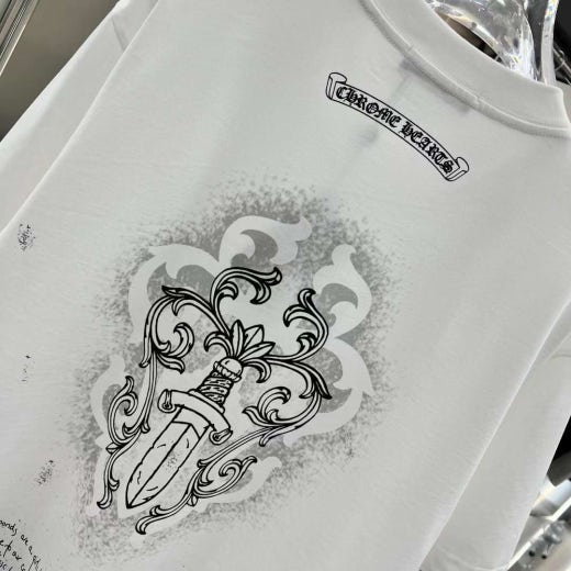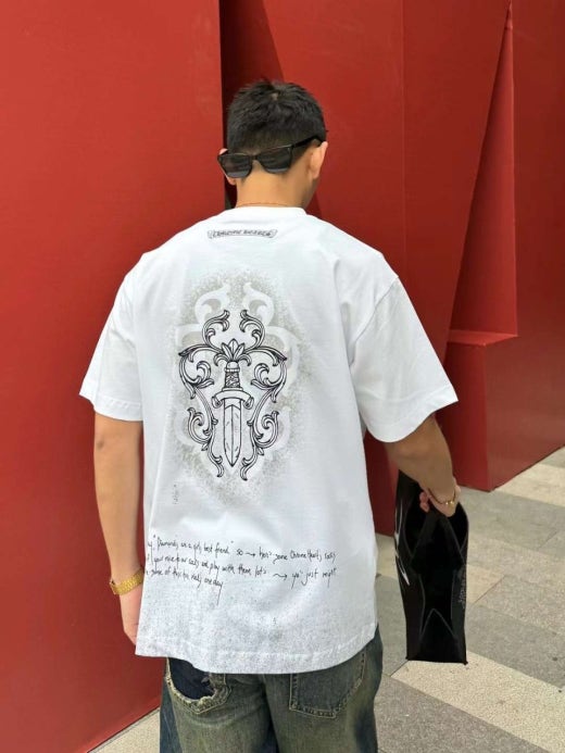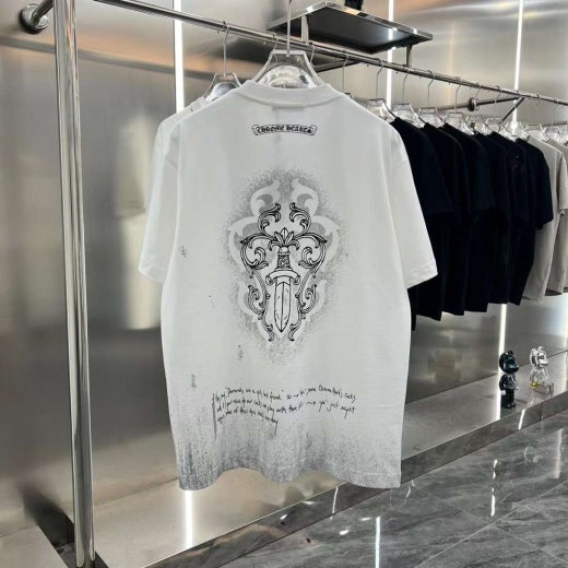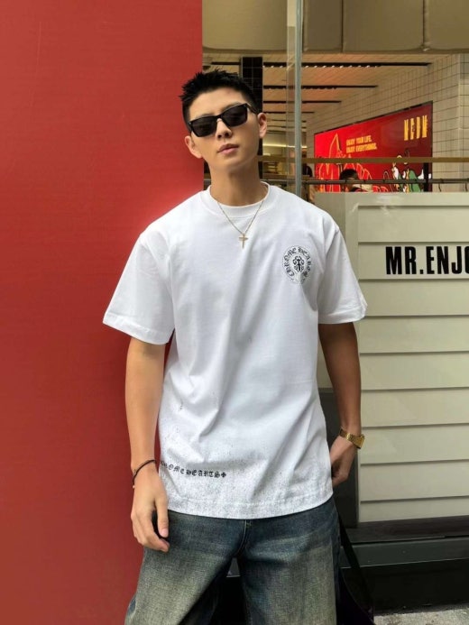 크롬하츠 빈티지 페인팅 십자 로고 반팔티셔츠 화이트 남성용(1컬러)