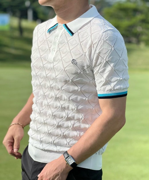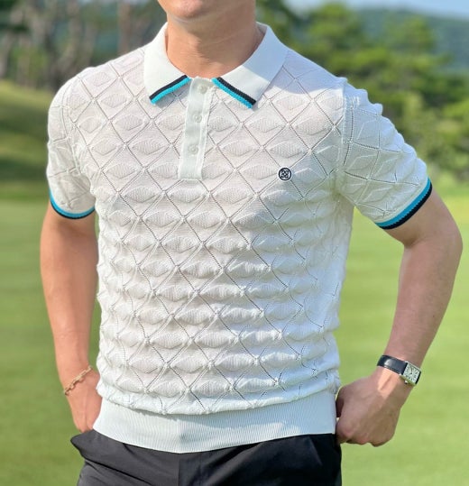 지포어 매.장.판 지오메트릭 텍스터 니트 폴로 스웨터 화이트 남성용(1컬러)