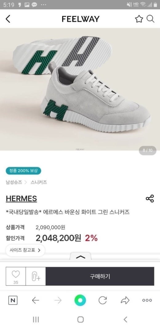에르메스 바운싱 스니커즈 화이트/그린 남여공용(1컬러)
